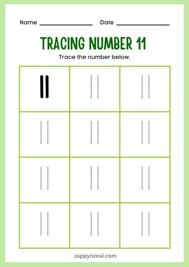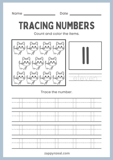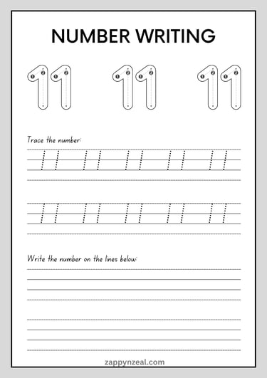 Numbers 11-20 Reading and Tracing - Free Printable worksheets